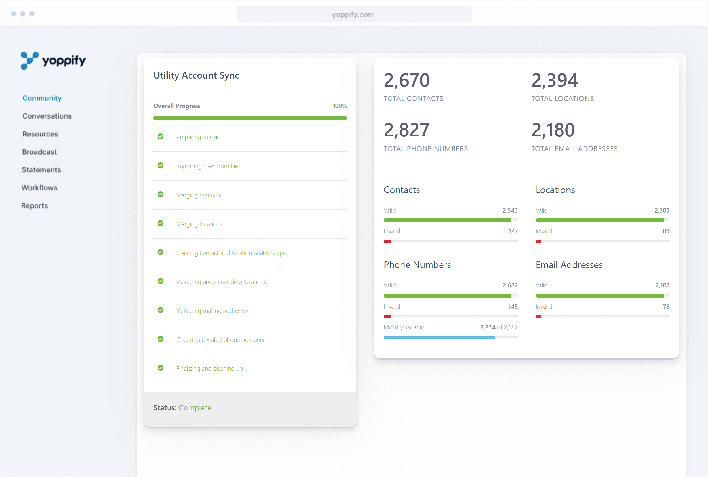 Today, Yoppify delivers a variety of technical solutions tailored specifically for public utilities and local governments. By integrating and enhancing an agency's internal data, our tools enable communities to engage with personalized information through multichannel outreach (SMS, email, voice, postcards, letters, and web chat), community web portals, custom input forms, and automated workflows.